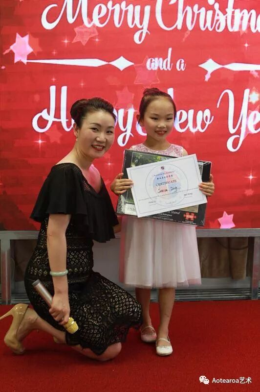 音乐会伴随着新西兰艺术学院少儿合唱团演唱的Amazing Grace和Ruolph the Red-nosed Reindeer两首歌曲圆满结束,孩子们卖力的演唱令家长感到无比自豪,也让老师们感到欣慰。李芬校长和王卓杰老师为学生颁发年度学习证书和奖品并与学生合影留念,孩子们拿到证书的喜悦和成就感被相机记录下成长的一页,弥足珍贵。