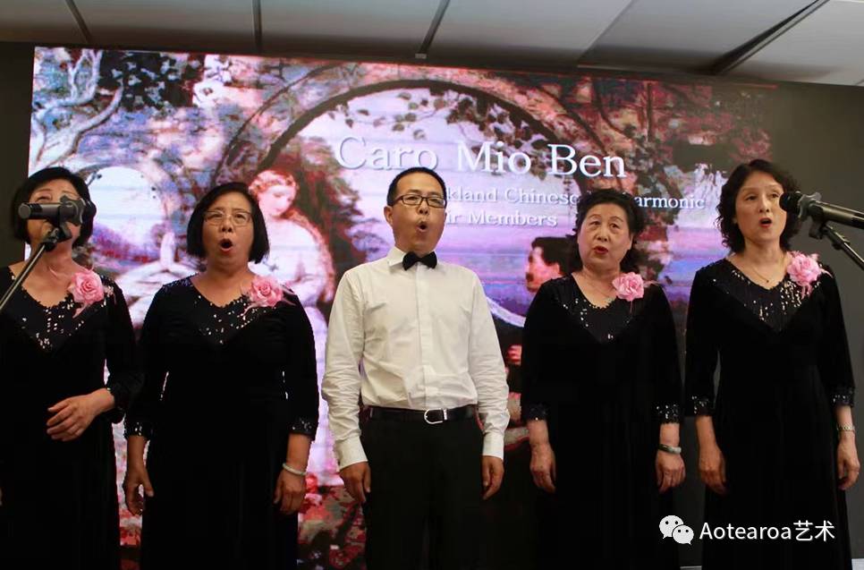 接下来是奥克兰华人爱乐合唱团的小合唱成员为大家献唱意大利经典Caro Mio Ben,演唱十分精彩,他们对歌曲的演绎要求很高,斟酌仔细,反复练习,这种对歌唱的爱好和执着令人钦佩。